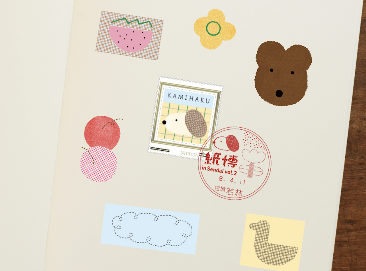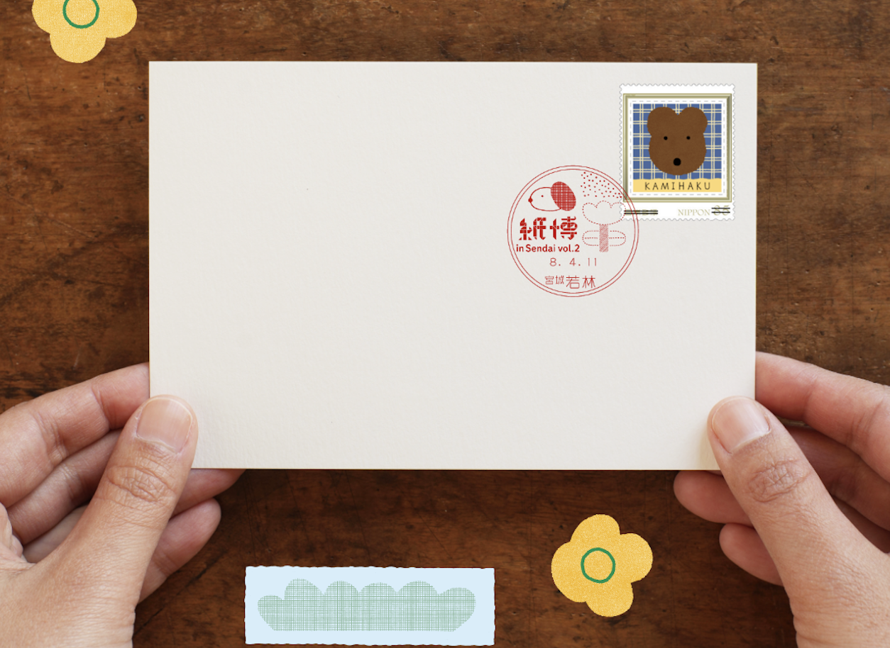 若林郵便局の協力のもと、2日間限定で「紙博郵便局」が会場に登場! なんと、紙博の会場から実際にお手紙やハガキを郵便に出すことができますよ。さらに今回は、特別に消印としてしまむらひかりさんが手がけてくれた「小型印(期間限定で押印できる絵入りの消印)」を押印してもらえます!