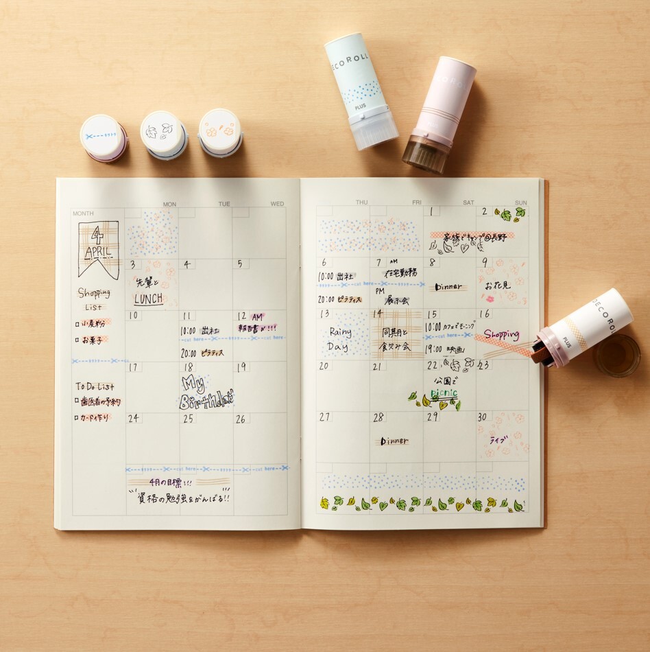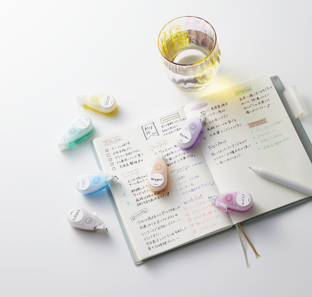 テープを引くだけでデザイン柄が転写され、手帳、ノート、カードをかわいく飾れるデコレーションテープ!