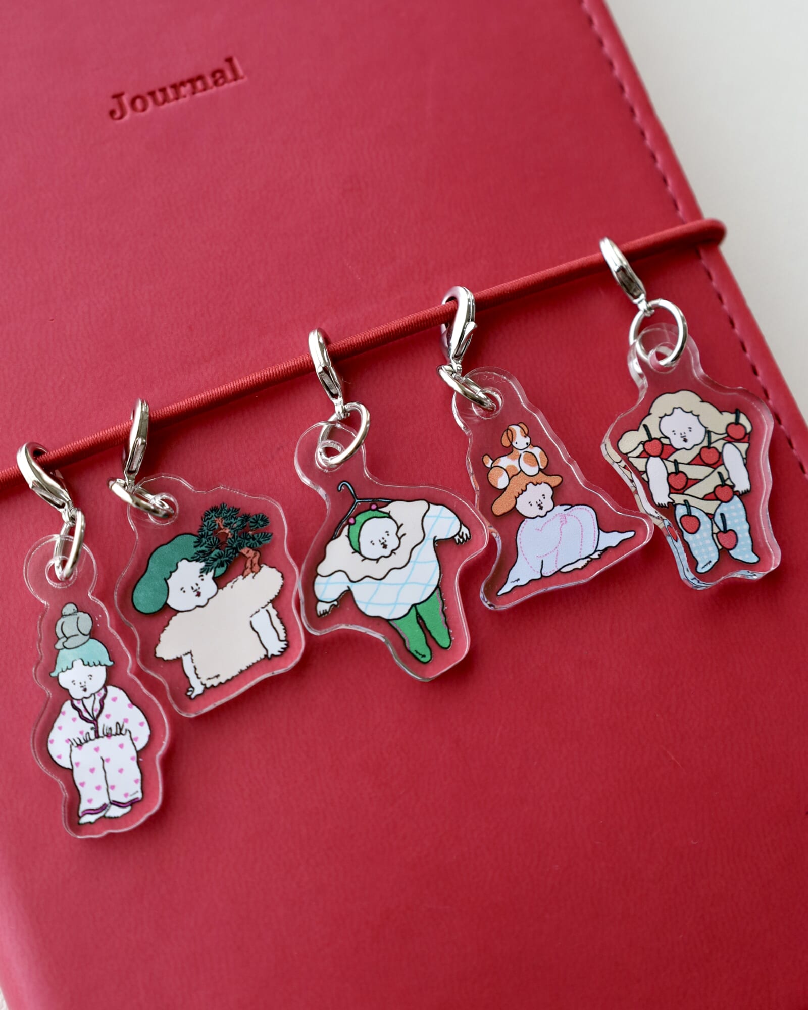 今年初の試みとしてイベントやPOPUPに合わせて、各所限定の絵柄で販売しているアクリルチャームです。ちなみに、新規でイラストを描き下ろす時は「普段使わない鮮やかな緑を入れてみよう」とか「苦手な黄味系のカラーをベースに使ってみよう」とか、これまでに描いたものと雰囲気が変わるように新たな挑戦をしています。