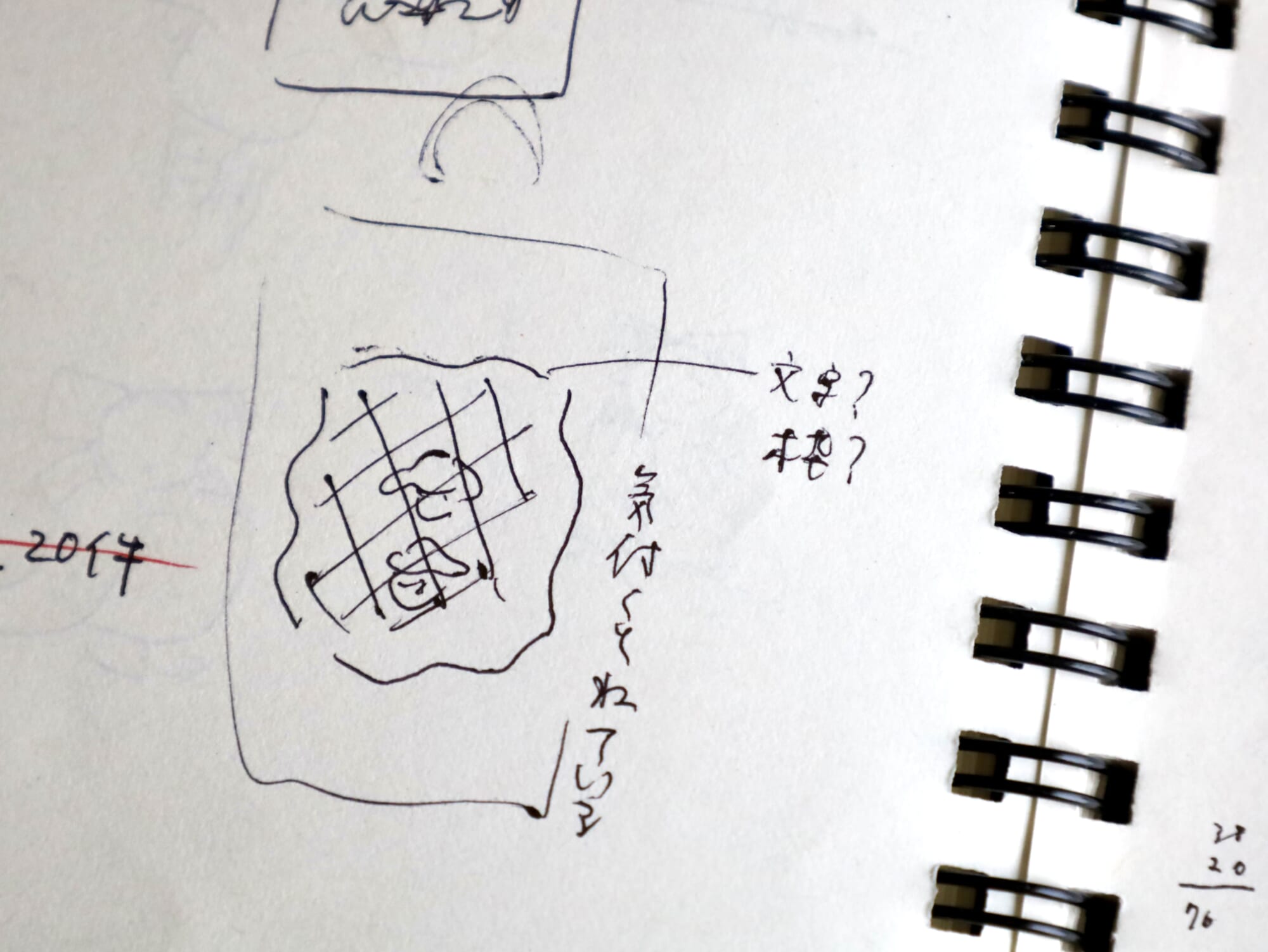 今は2つの方法で記録するようにしています。まずは、LINEの自分にしか見えないトークルーム。「本日のどうでもよいこと」のアイデアを文字でメモしています。あとは、イラストで記録するためのラフノートのようなものも使っています。