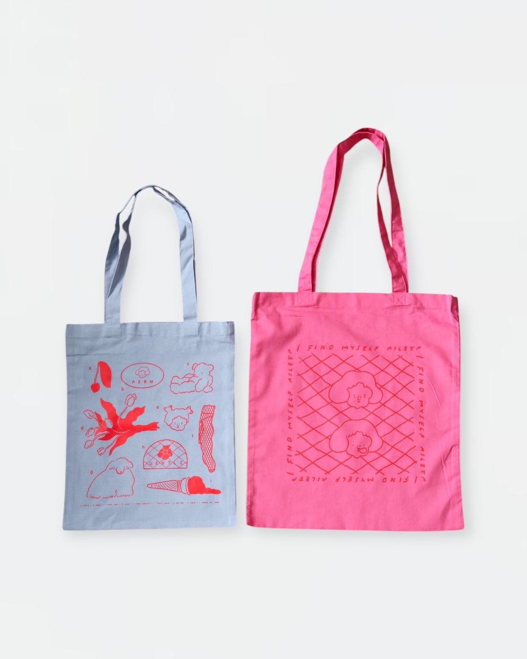 東京の紙博では1日半くらいで売り切れてしまった隠れ人気アイテムです! ドピンクトートに入っている英文は「I FIND MYSELF ASLEEP(気づくと寝ている)」で、イラストもそれを表しています(笑)