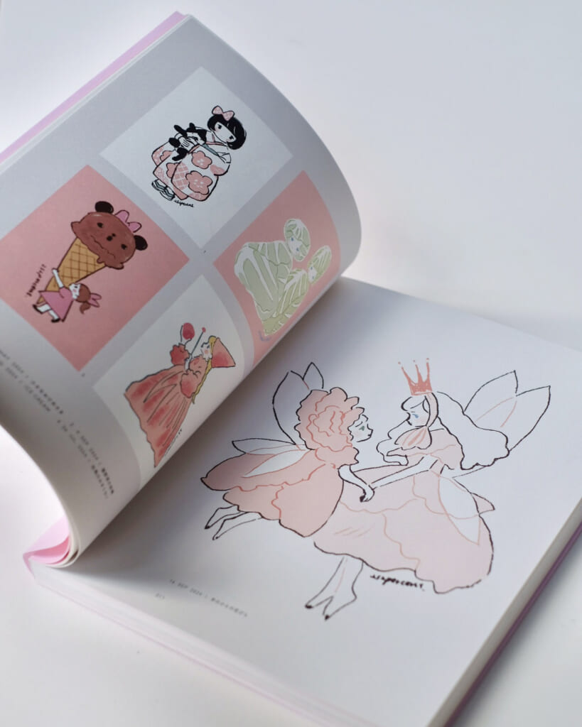 「イラスト集とグッズ」およそ10年間日課にしている1日1枚のイラスト投稿。そのイラストをまとめたイラスト集「Pink」と、そのグッズです。