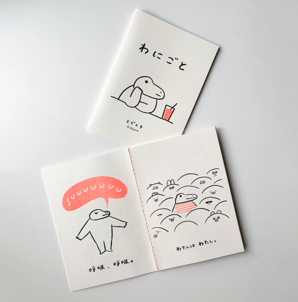 ポケットに入るくらいの小さな絵を描くことが好きで、それを使って、日々のそばにそっと置いてもらえるようなものを作りたいと思ったことがはじまりでした。その時に作ったのが「わにごと」というポケットえほんです。わにくんが、日々たいせつにしていることを教えてくれる内容になっています。