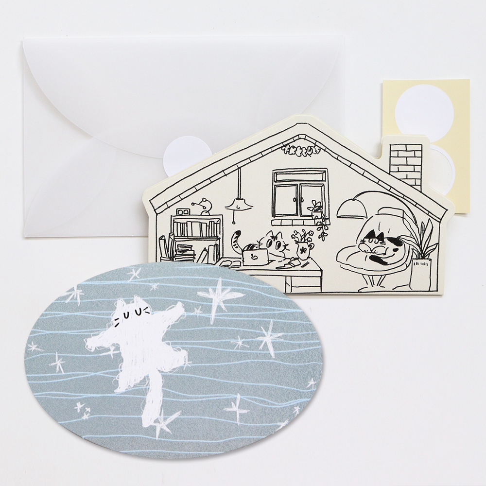 「日常生活の賛美」をテーマにものづくりを行う韓国発祥のブランド・PROW。白黒をメインにしたシンプルな線画のイラストは、色数は少なくてもどこか温かさを感じさせてくれます。いろいろな物事に驚いて尻尾がボワっとふくらむ「サプライズキャット」や、お化けのような白い布をかぶった「ゴーストキャット」など、他にはないキャラクターも見所のひとつ。シンプルなアイテムは使いやすさも抜群です。