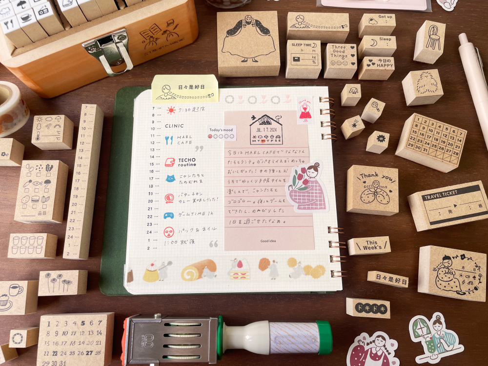 曽祖父の代から、はんこづくりを家業として続ける中で、「もっとお客さま一人ひとりの“欲しい”に寄り添ったものづくりがしたい」と思うようになりました。手帳への記録は、人によって本当にさまざまです。書きたいことも、残したい気持ちも、使い方も、人の数だけ違う。だからこそ、少しニッチでも「こんなの欲しかった」と思ってもらえるものを、形にしたいと考えました。そうして生まれたのが、手帳に特化したスタンプづくりです。自分たちの手で、ひとつひとつ仕立てることができるからこそ、大量生産では拾いきれない小さなニーズにも応えることができる。その強みを生かして、「記録したい気持ち」に寄り添うスタンプのお店を始めました。