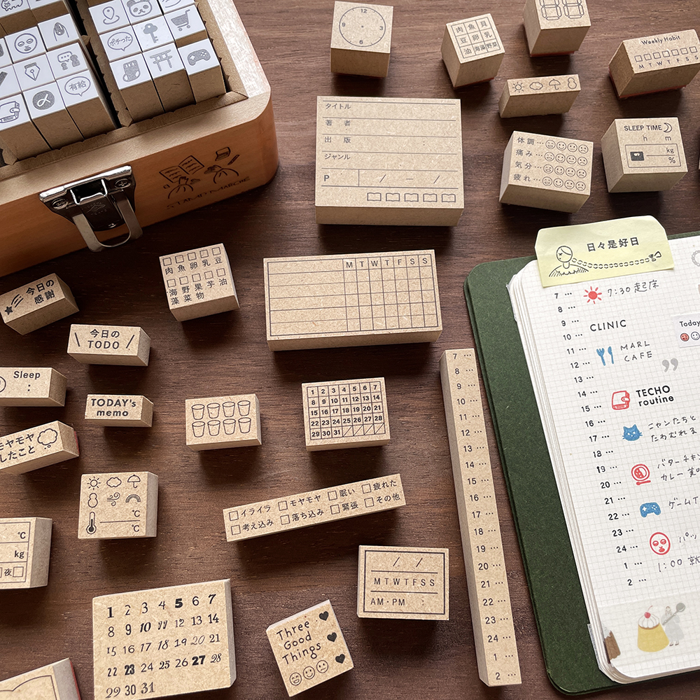 「バーチカルスタンプ」ラベラーシールにも押せる小さな手帳スタンプたち。ライフログのお供に。