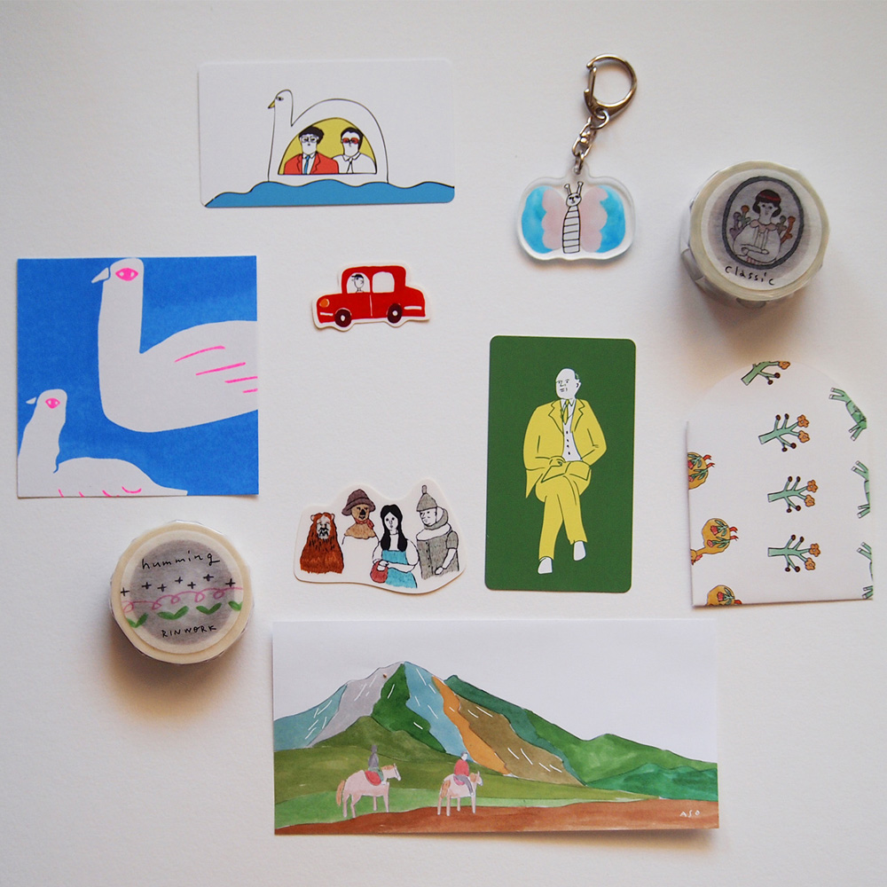 イラストレーターのりんさんが描くのは、日々の生活のふとした瞬間にちょっと良い仕事をしてくれる作品。何とも言えない表情をした人や動物の姿が、緩やかなタッチで描かれています。「RIN WORK」は、そんなイラストをマスキングテープやシール、ポチ袋やスタンプなどにしたアイテムを取り揃えているブランドです。さらには、りんさん自らが刺繍をしたブローチなども! さまざまな紙ものや布もので、日常にユーモアをプラスしてくれますよ。