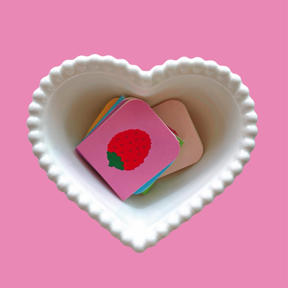 「クリーミーメモ (Creamy Memo)」 変形した長円形のフォルムが可愛いメモ帳です。図形や背景の色がそれぞれ異なり、メモを書く時間がもっと楽しくなります。