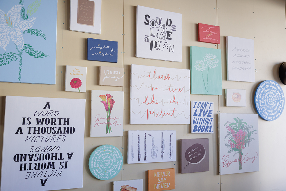 ずっと文字を描くのが好きでオリジナルのフォントを作って描いていたら、楽しくなって色々なものに描くようになりました。