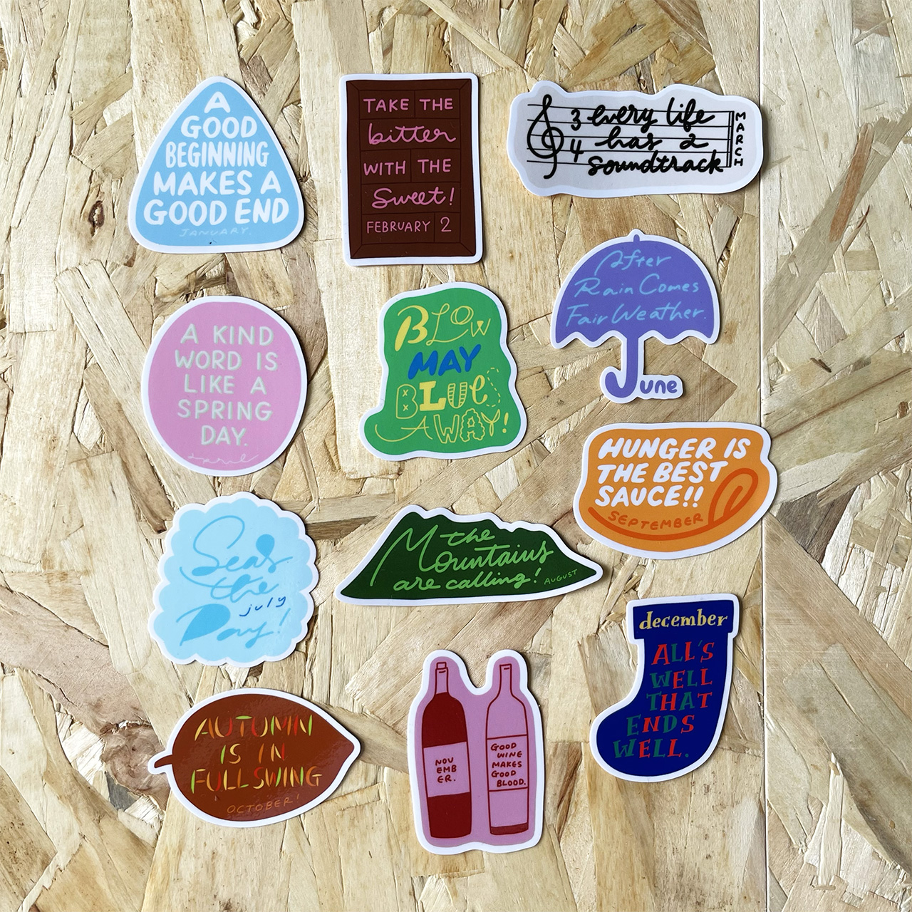 「12months ステッカー」全部で12ヶ月分! その月にまつわる言葉を描いたステッカーです。