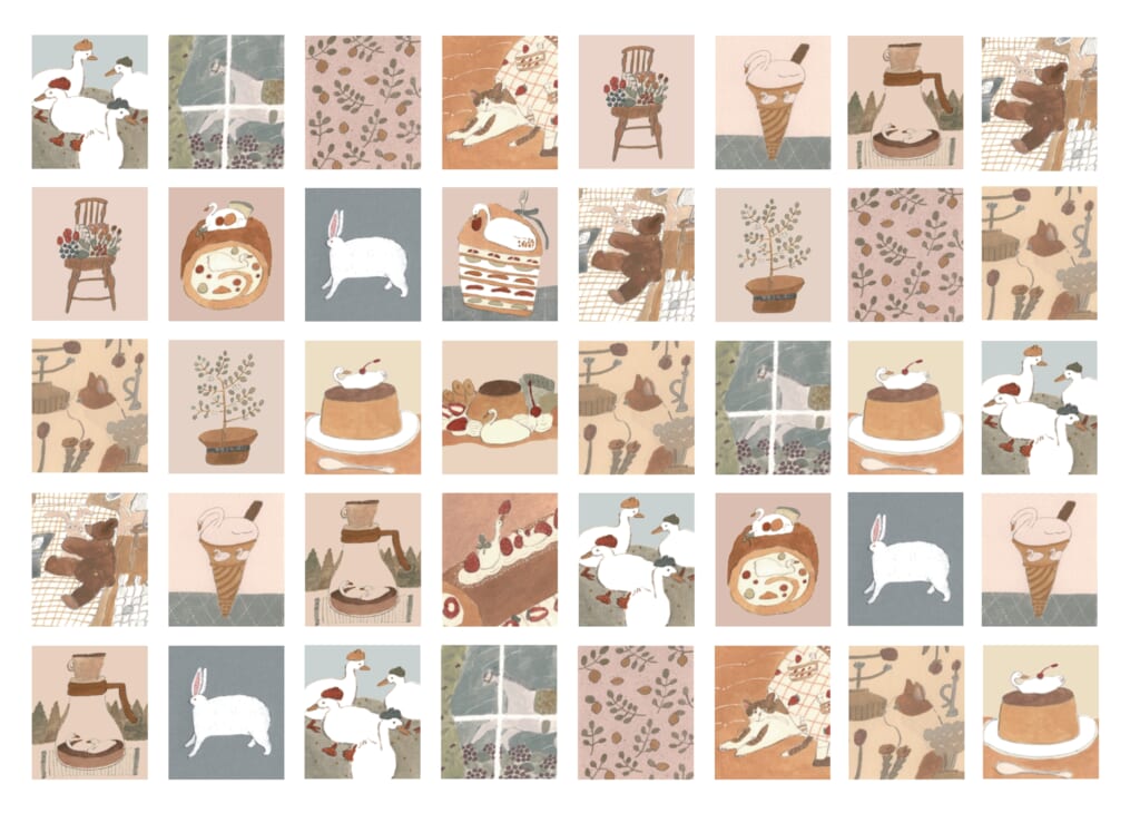 2017年に活動を始め、今年で8年目。POPUP、個展、イベントを中心に国内外で活動中。紙ものは2023年9月紙博に初めて参加する事になってから制作の幅を拡大している。喫茶店やパン屋さんのイラストも制作。