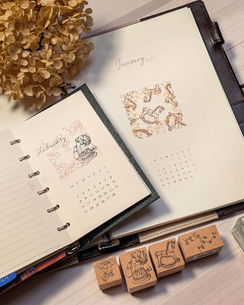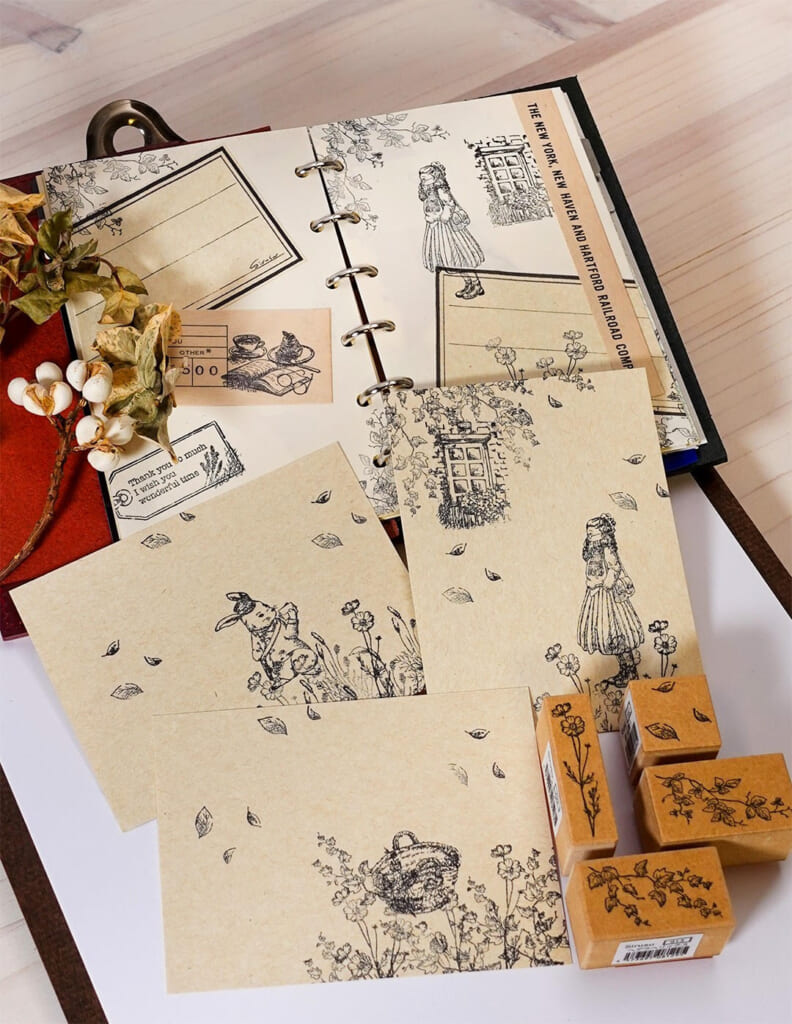 Sirusuのスタンプの種類は300種類以上。そんなスタンプを組み合わせて重ねてバリエーション豊かに使う方法をお伝えできたらと思っています。スタンプは使っても使っても無くならないので、たくさん使い回して楽しみましょう。
