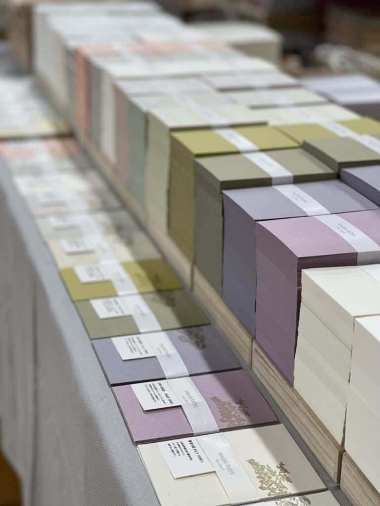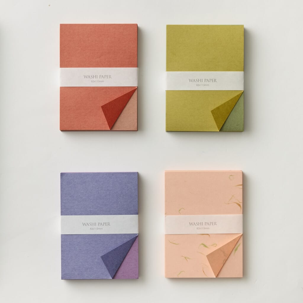 お好きな和紙の束を4つ選んでいただき、お好みのかけ紙でお包みしてお渡しする、紙博恒例の「MYひとしめ」。このミニサイズのひとしめは、半紙の約1/8スケール。手帳レフィルのM6(ミニ6穴)に近いサイズで、メモや小さな一筆箋、ジャーナルのコラージュ素材として使いやすい寸法です。2026年は、オランダの古い植物画をテーマにしたかけ紙で展開していきます。