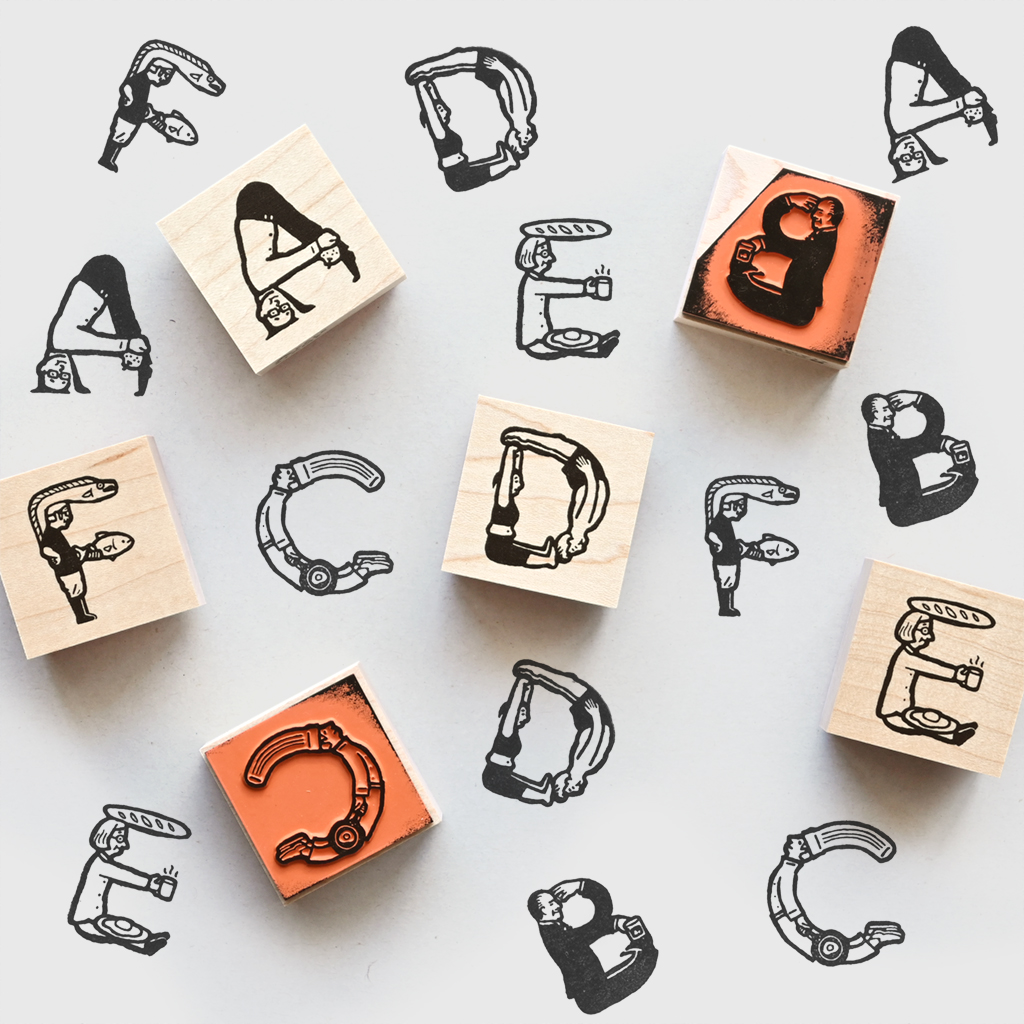 「ABCスタンプ」26種類のアルファベットの形になった人たちのスタンプです。
