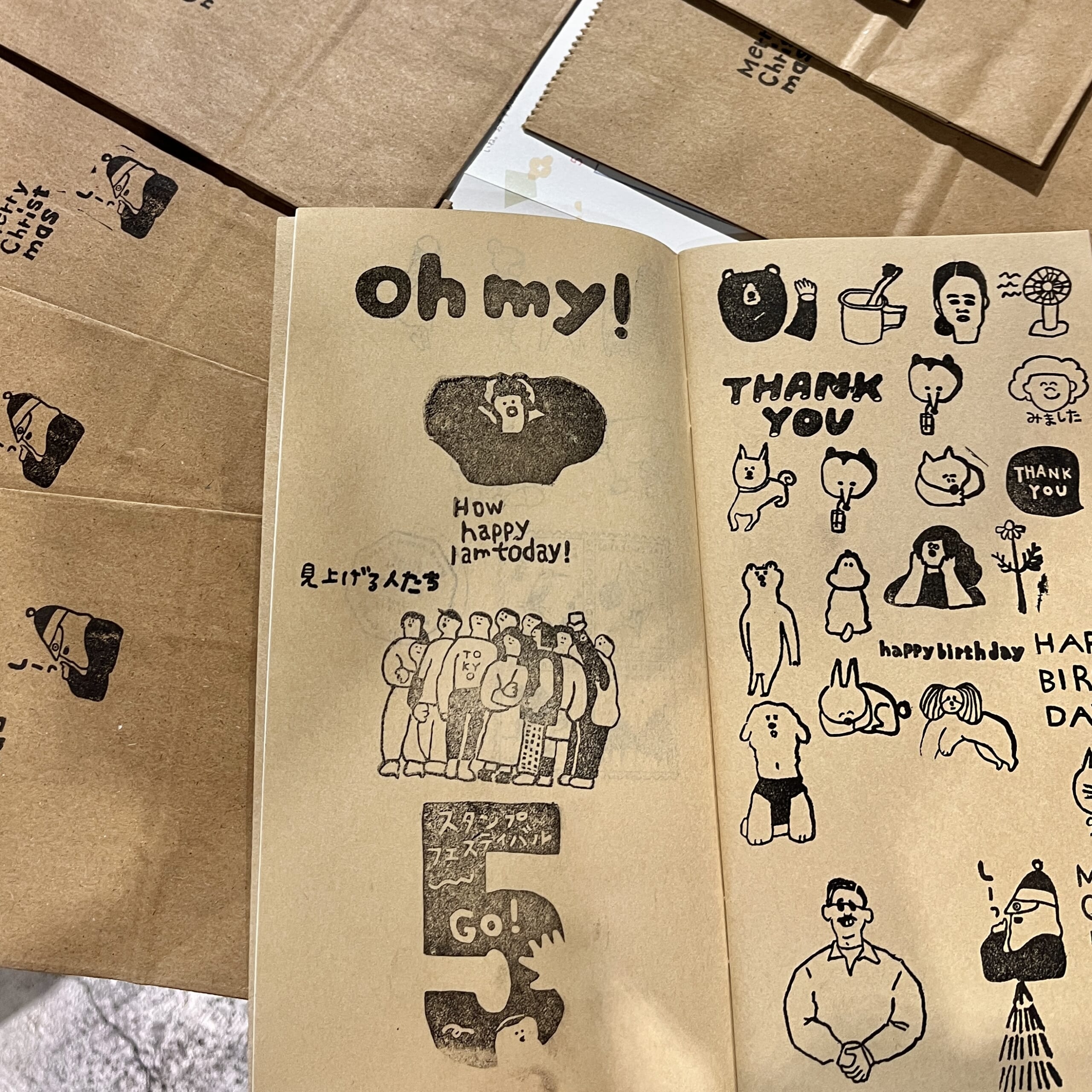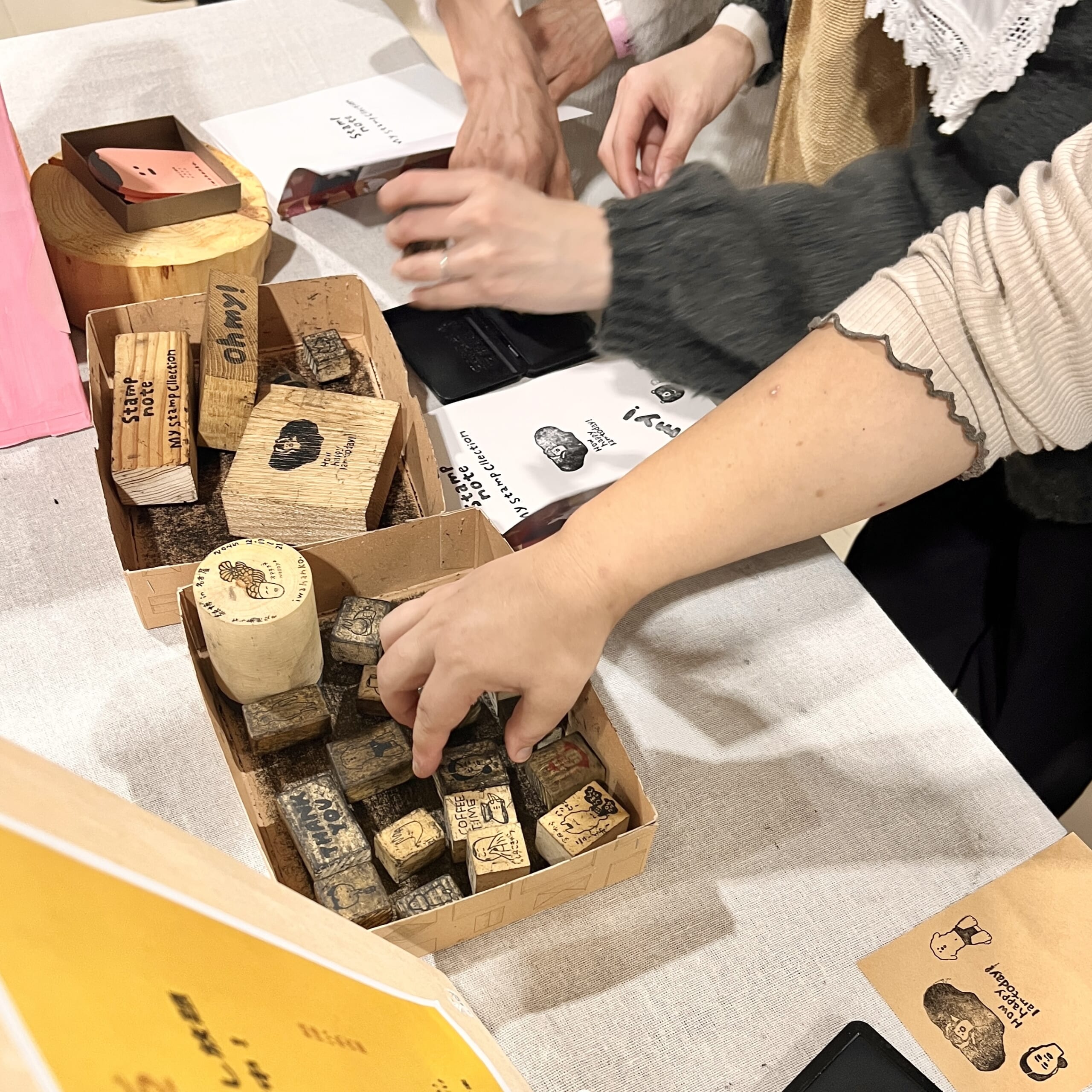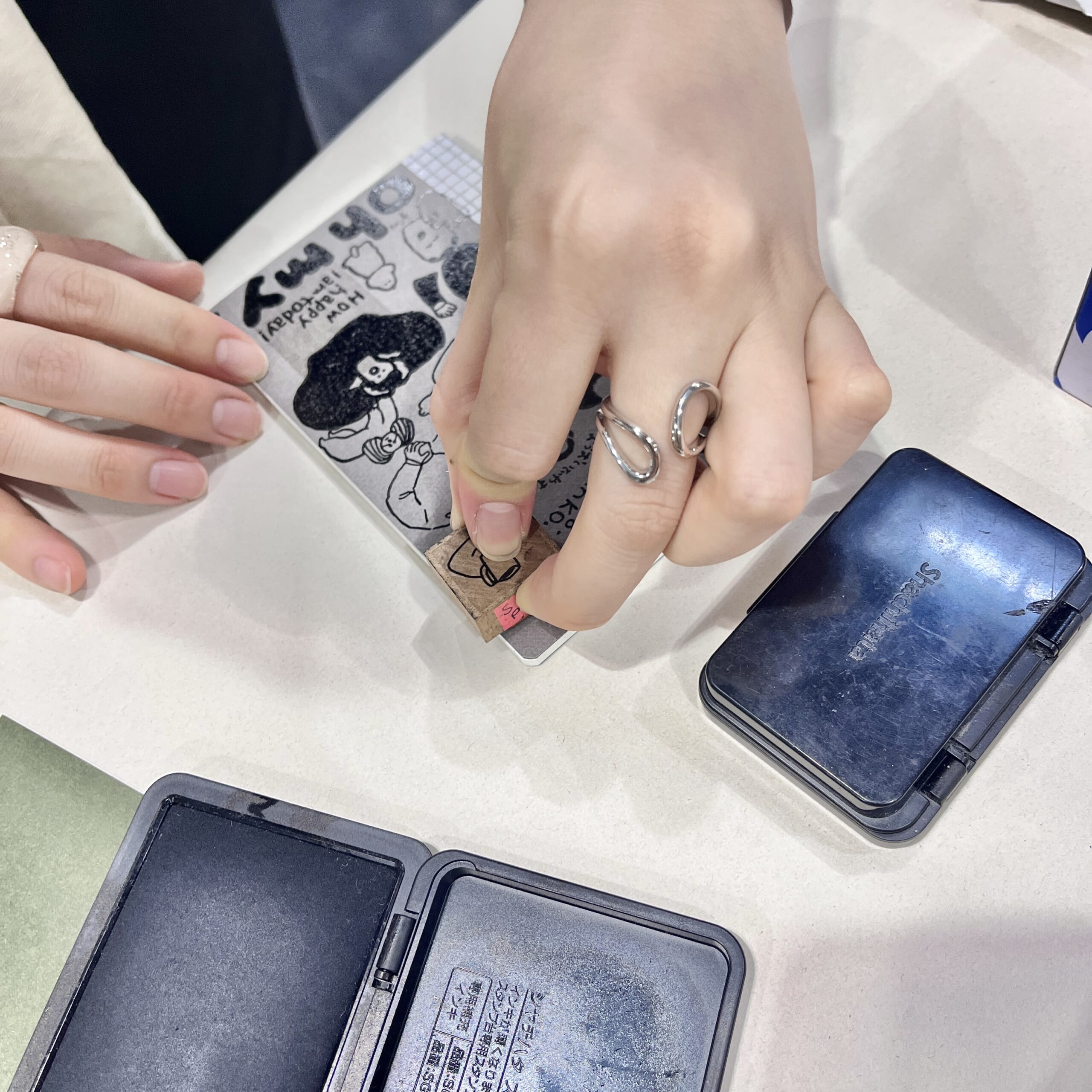 これまでに制作した消しゴムはんこや、記念スタンプを時間の許す限り自由に押して楽しめます。中には販売していないイラストのはんこも! ご自身のノートや手帳、付箋など“渾身の紙アイテム”にたくさん押してくださいね。