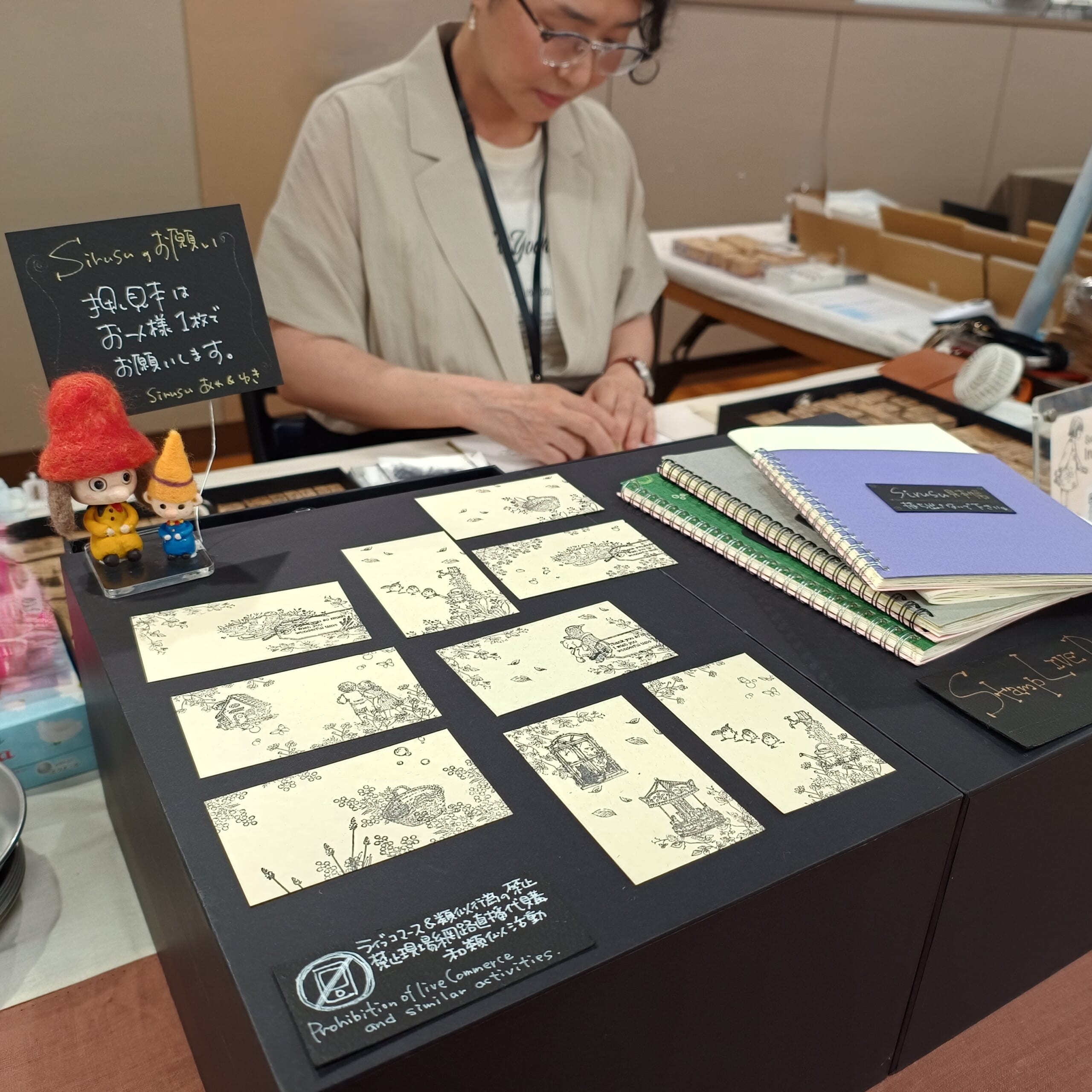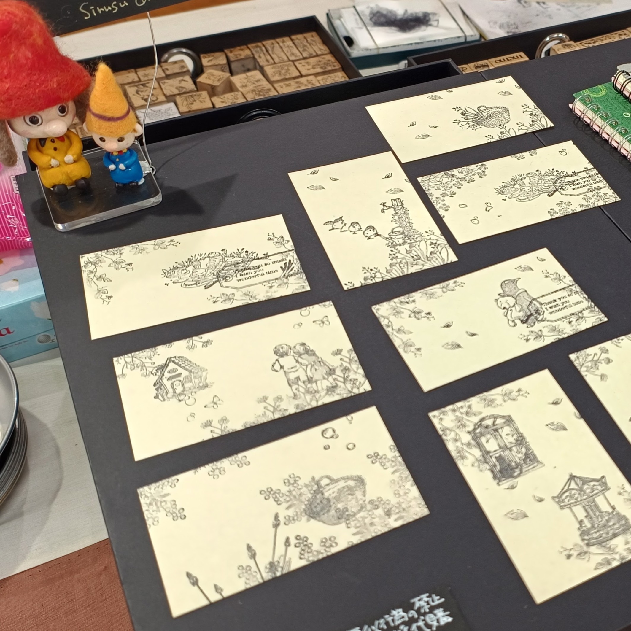 Sirusuのスタンプは、線画のように描くことができます。線が細く、300種以上あり、絵柄もさまざま(子どもたち、動物たち、街角、物語の世界、ボタニカルなど)あるSirusuのスタンプたち。みなさまの「どのように使ったらいいのかな?」という疑問にお答えします! 「ノートに押したい」「便せんを作りたい」「お誕生日のカードを作りたい」などなど、みなさまの「こんな風にしたい!」というご要望をお聞きしてご提案させていただきます。Sirusuのスタンプを使った押し方見本をお渡しする実演です! ぜひ見に来てくださいね!