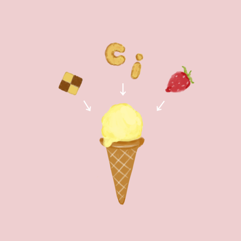 アイスを持ったあなたの似顔絵を描きます。アイスの味やトッピングは自由! イニシャルのクッキーや好きなフルーツなど、お気に入りが詰まったアイスを作りましょう。完成した絵はデータでお渡しします。